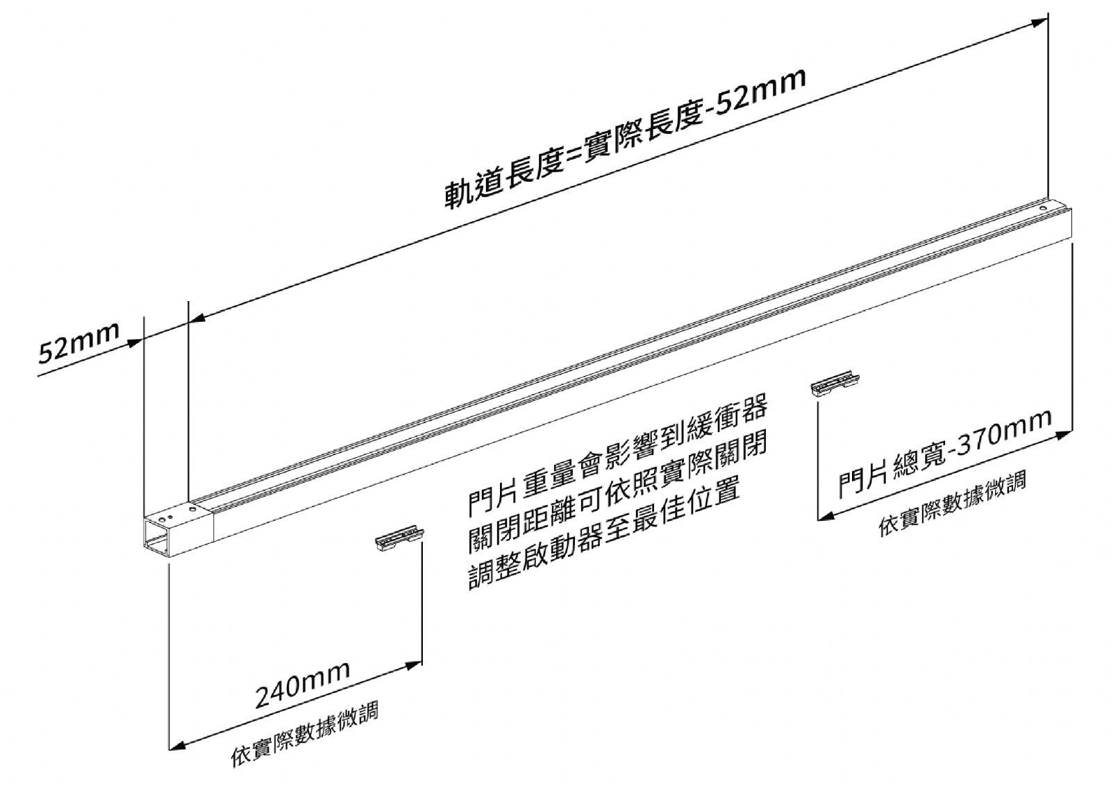 ■ 雙向緩衝拉門V68/PRO MAX (加強版);100kg:寬650-1500mm / 高3000mm以下