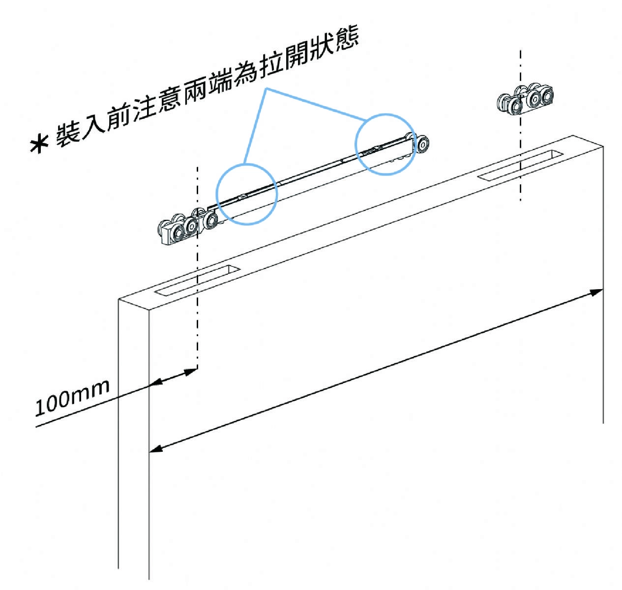■ 同一支軌道能適用玻璃拉門,也能適用60 / 100 / 120kg的輪子